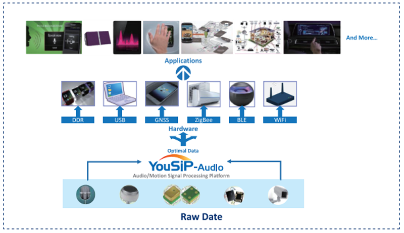 YouSiP-Audio開發(fā)了一套完整的硬件解決方案,用于收集原始音頻、語音、運動、超聲波和圖像信號數(shù)據(jù),然后將它們傳遞給主機設(shè)備。